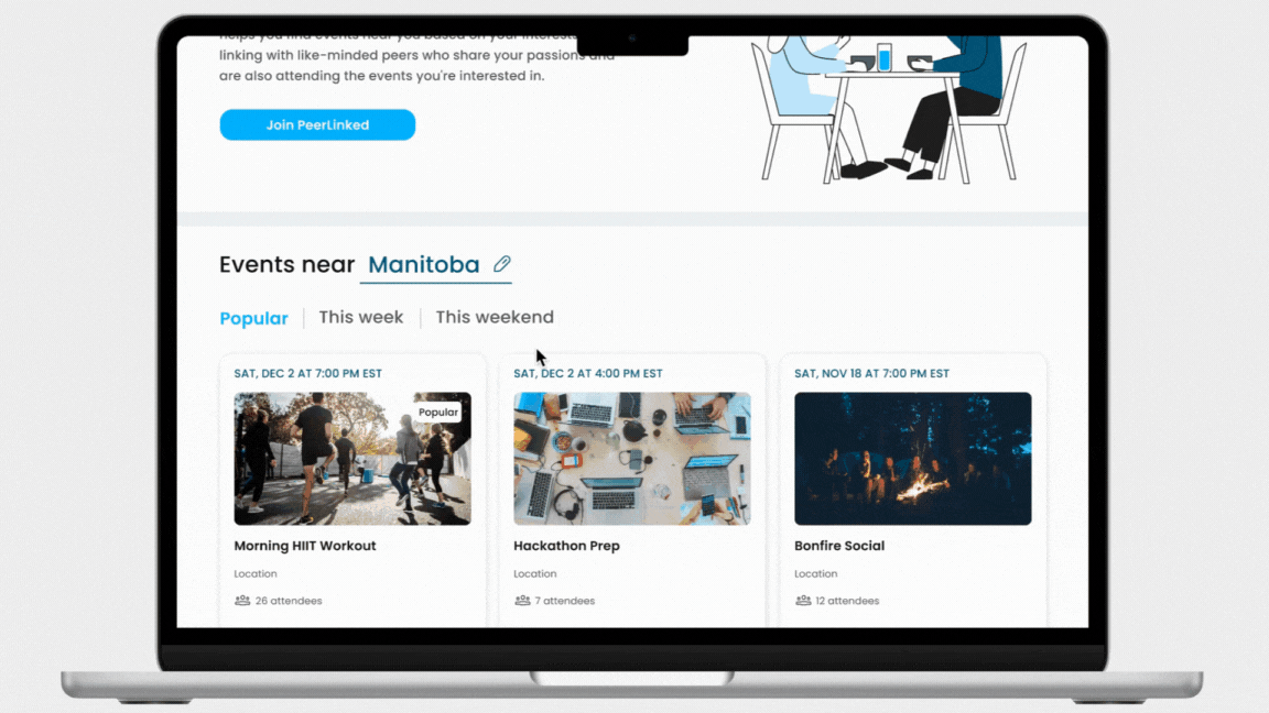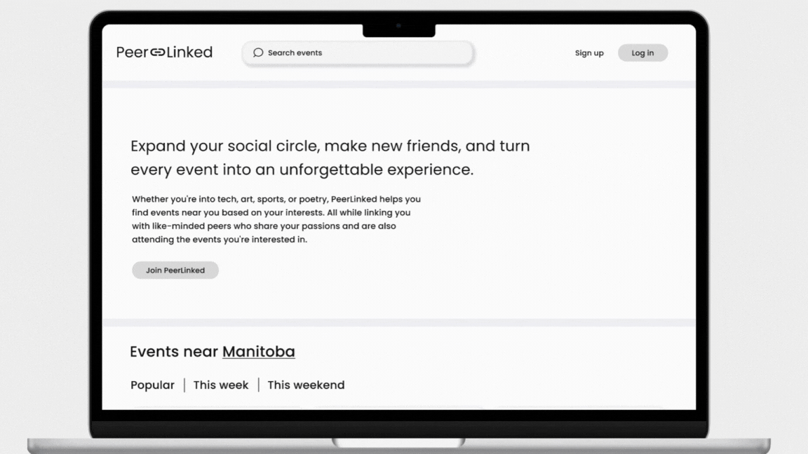 This Industry Design Project (IDP) focuses on giving Springboard collaborators hands on experience to provide insight and support to a new or existing product. I was assigned to My Student Wellbeing, a Canadian startup company that focuses on student wellbeing. The founder wanted to start a new venture that aims to support students in another way. Peer Linked is a web application that aims to improve the social aspect of the university experience for students, helping them discover events that align with their interests and like-minded peers to attend with. Over 4 weeks, my team of 2 other designers and I redesigned the existing site to meet industry standards, improve usability, and increase web traffic while following the company’s branding and requirements.